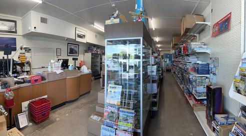 We have plastic models, HO trains, glue, paint, tools, and building materials.